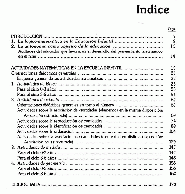 Repertorio de actividades lógico-matemáticas, partiendo de las capacidades motrices, cognitivo-lingüísticas, de representación, etc. propias de los niños y niñas de esta etapa. La estructura del libro facilita la secuencialización de las actividades.