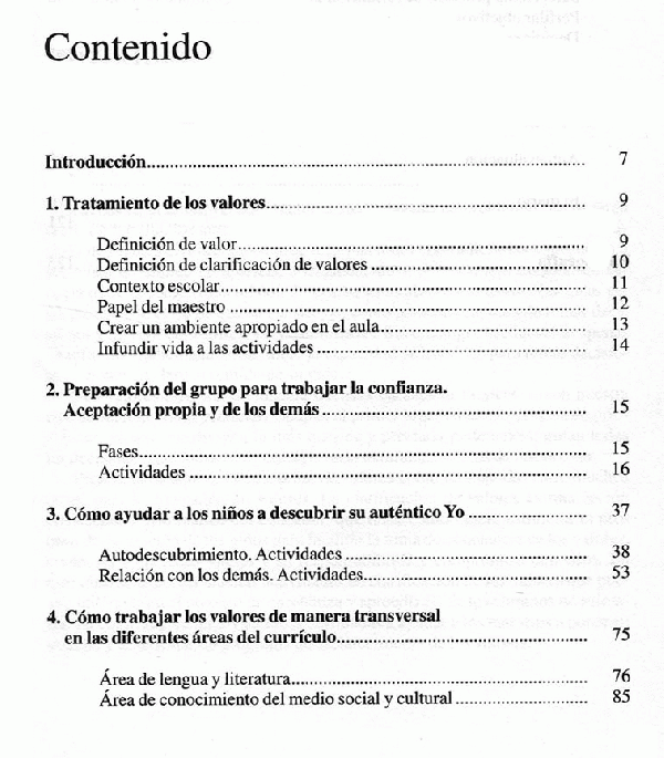 La obra expone numerosas actividades de clarificación de los valores que pueden utilizarse en el proceso de enseñanza y aprendizaje de los alumnos de Primaria.