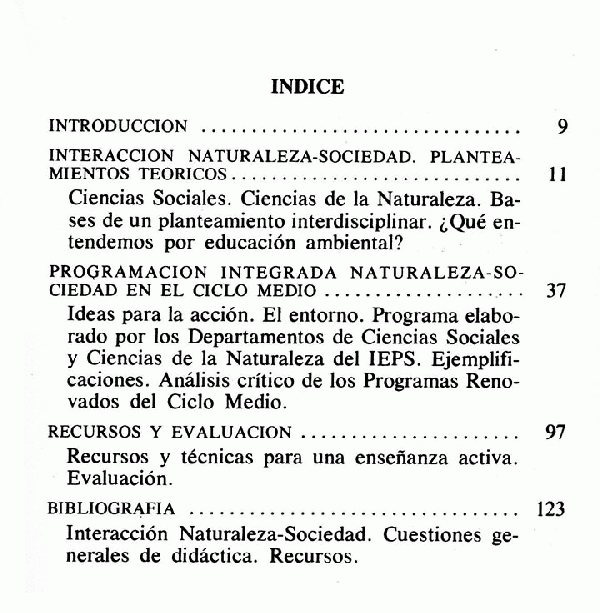 | 372.302 / G24 Enseñar y Aprender en Educación Infantil a Través de Proyectos / [Impreso] | 372.357 / A62 Educación Ambiental: [Impreso] Conservar la Naturaleza y Mejorar el Medio Ambiente / | 372.357 / A66 Ecología para Niños / [Impreso] | 372.357 / LL756 Interacción Naturaleza-Sociedad en el Ciclo Medio / [Impreso] | 372.357 / M38 Teoría y Práctica de la Educación Ambiental / [Impreso] | 372.357 / P36 Lineamientos para Formadores en Educación Ambiental / [Impreso] | 372.357 / Z76 Ecopedagogía para el Nuevo Milenio / [Impreso] |