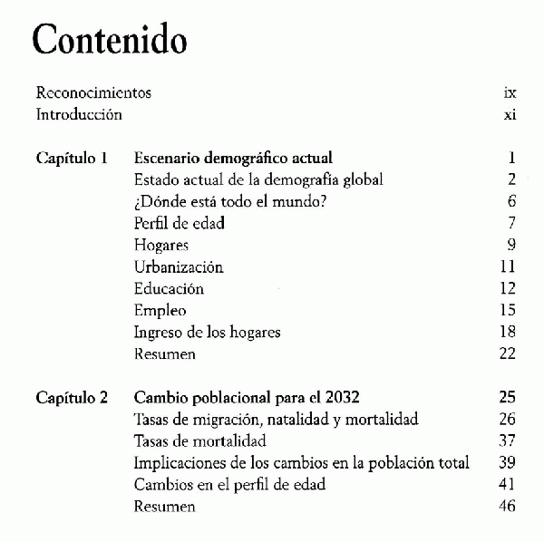 Resumen: El futuro del mundo brinda una perspectiva de los cambios que se esperan en el mundo durante los siguientes 20 años en relación con rubros como población, hogares, fuerza laboral, ingresos, patrones de gastos y otros más.