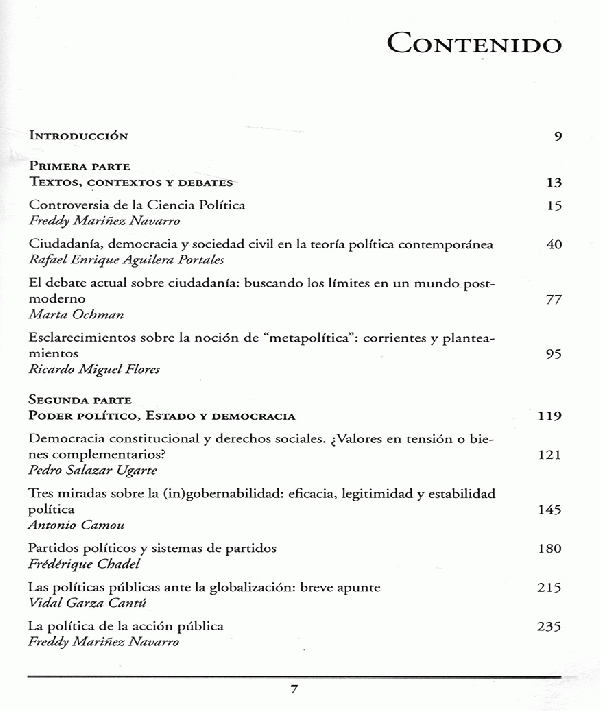 El libro nos introduce a reflexiones críticas, encontrando espacios para el debate formativo de los temas que en estos momentos ocupan y preocupan a la disciplina de la política.