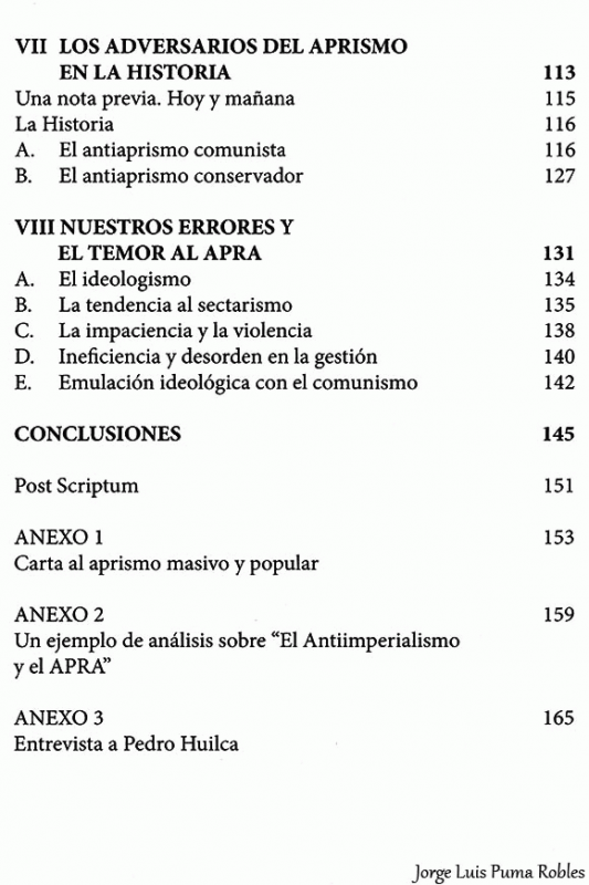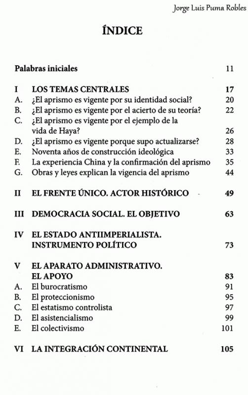A lo largo del libro, el ex presidente Alan García reivindican el carácter de "cuerpo teórico coherente y método de análisis realista" del pensamiento aprista y resalta el mérito de Haya de la Torre, quien desde un inicio optó por la democracia social, concepto hacia el cual se dirigen los sistemas políticos actuales en casi todo el orbe.