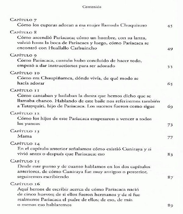Dioses y Hombres de Huarochirí, es la obra quechua más importantes de cuantas existen, un documento excepcional y sin equivalente tanto por su contenido como por la forma.