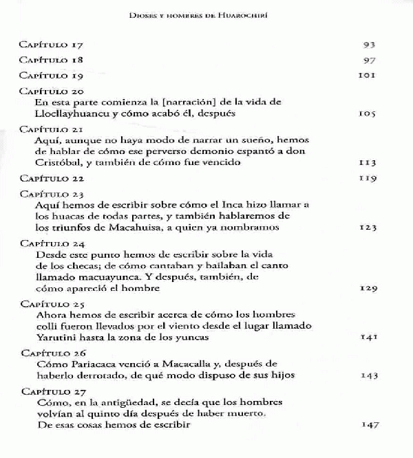 Dioses y Hombres de Huarochirí, es el único texto quechua popular conocidos de los siglos xvi y xvii y el único que ofrece un cuadro completo, coherente, de la mitología, de los ritos y de la sociedad en una provincia del Perú antiguo.