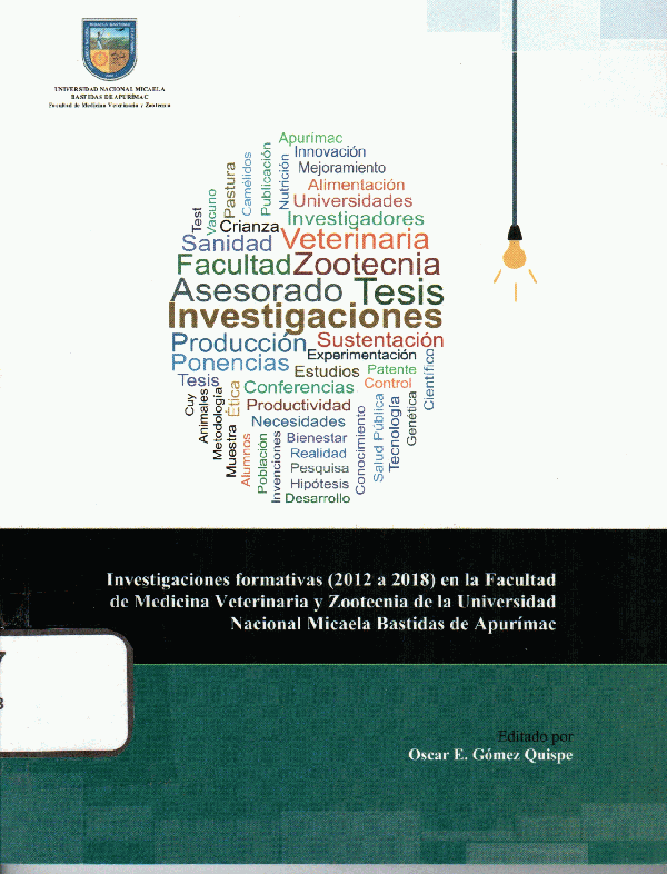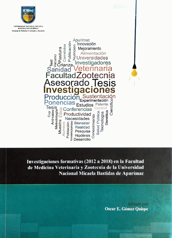 Investigaciones formativas : ( 2012 a 2018) en la Facultad de Medicina Veterinaria y Zootecnia de la Universidad Nacional Micaela Bastidas de Apurímac / Oscar E, Gómez Quispe [Impreso]